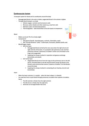 These are detailed and comprehensive lecture notes for PHAR3911, written in alignment with the learning objectives. The notes cover a wide range of topics across the unit including: - Cardiovascular System -Blood and Oxygen Supply -Heart and Cardiac Valves -The Cardiac Cycle and Sounds of the Heart - Wiggers Diagram - Pharmacogenetics of Statins - Pharmacogenomic Testing for Statins - Clinical Implications of Statin Pharmacogenomics - Nutrition and Cardiovascular Health – Fat and Cholesterol - Plant Sterols and Dietary Recommendations - ALSO INCLUDES MANY OTHER TOPICS!!