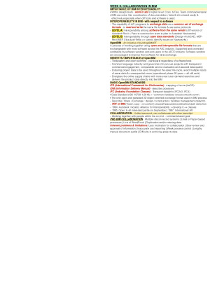 This is a four-page double sided A4 cheat sheet for the final exam. This cheat sheet contains all examinable course content - clearly organised into topics > headings > subheadings that are colour-coded for easy identification during the final exam. Topic List: - Introduction to BIM & BIM Business Plan - Company Strategy & Structure / SWOT Analysis - BIM & Supply Chain Management - Change Management via BIM - BIM Implementation - Collaboration in BIM - BIM Managers & LOD - BIM Execution in Practice
