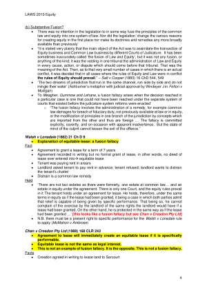 These comprehensive notes are all you need for exam preparation. They are detailed, well-structured, and include accurate references to key cases and legislation. The notes highlight nuances in problem-solving questions, explain why certain obiter dicta are significant and flag scenarios where a case may be particularly important. They also pose and work through questions in a way that sharpens analytical skills and exam technique. They are truly a one-stop shop and helped me score 91! Topics covered include: * The history and nature of equity * Applications of the conscience of equity * Remedial equity * The nature and constitution of trusts * Operation of express trusts * Fiduciary obligations * Resulting trusts * Constructive trusts * Tracing