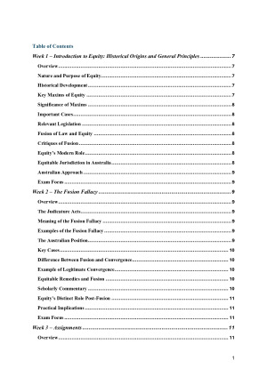 These Equity & Trusts notes cover the full semester (Weeks 1–12) in clear, structured bullet points designed for open-book exams. Includes concise summaries of key doctrines, cases, and legislation with IRAC templates and exam checklists. Perfect for quick referencing under time pressure. Topics include: • Nature and purpose of equity • Fusion fallacy • Assignments and dispositions • Fiduciary obligations and breach of confidence • Express, resulting, constructive, and charitable trusts • Breach of trust, remedies, tracing, and third-party liability • Full “Exam Toolkit” with IRAC scaffolds, essay checklist, and problem question framework. Written in plain language and formatted for easy reading and printing.