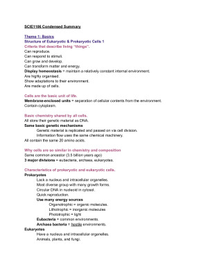 SCIE1106 Molecular Biology of the Cell - Super summarized exam memorizing notes