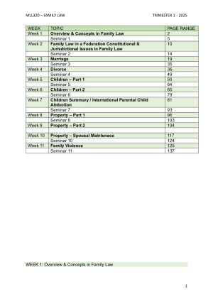 2025 Family Law Notes (MLL320 - Deakin University), including seminar and lecture notes, as well as practice exams.