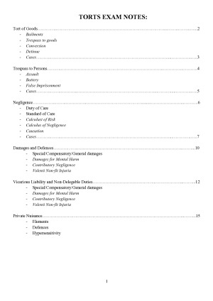 PROCESS NOTES AND CASE SUMMARIES Torts of Goods: Bailments, Tresspass to Goods, Converison, Detinue Trespass to Persons Assault Battery False Imprisonment Negligence Duty of Care, Standard of Care, Calculus of Risk and Negligence, Causation Damages and Defences Spcial compensation, damages for mental harm, contributory negligence, Volenti non-fit injuria VIcarious Liability and Non-Delegable Duties Private Nuisance