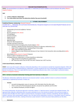 These are the notes I used in the UniMelb Equity and Trusts exam which scored me an H1 in the exam and an H1 overall. Equity & Trusts notes, covering all major principles and demonstrating how to apply them to cases. The material is organised specifically to help structure responses to hypothetical exam questions. Contents: Fiduciary relationships Express trusts Quistclose trusts Charitable purpose trusts Duties of trustees Fiduciary obligations Trustees’ rights Investment duties Resulting trusts Presumed resulting trusts Automatic resulting trusts Constructive trusts Unconscionability constructive trusts Common intention constructive trusts Constructive trusts arising from breach of fiduciary duty Remedies Personal remedies Barnes v Addy Tracing