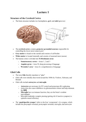 Complex Functions can feel overwhelming, but it doesn’t have to. I spent *many* hours putting together a clear, comprehensive summary of the whole subject. These notes helped me achieve an excellent mark, and I’m sharing them as I'm confident they will help you do the same. Good luck this semester! Contents Lecture 1: Introduction Lecture 2: Development of the cerebral cortex Lecture 3: Form and Function in Neuroscience Lecture 4: Defining Scales of the Brain Lecture 5: Sleep Lecture 6: Wakefulness and Attention Lecture 7: Consciousness Lecture 8: Models Lecture 9: Logic and Mathematics Lecture 10: Limits of Symbology Lecture 11: Why Can’t We Formalise Mathematics? Lecture 12: Research Seminar Lecture 13: Introduction to Nociception Lecture 14: Functional Anatomy of Nociceptors Lecture 15: Phenotyping Nociceptors Lecture 16: Visceral Sensation and Pain Lecture 17: Spinal Nociceptive Circuits Lecture 18: Ascending Nociceptive Pathways Lecture 19: Descending Pathways + Placebo Lecture 20: Neural mechanisms of Bone Pain Lecture 21: Interoception