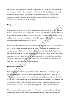 This document provides a comprehensive guide on how to approach and answer problem-based legal questions, with a specific focus on a LAW340 assignment concerning Equity and Trusts. The notes cover the following key areas: 1. General Problem-Solving Methodology: IRAC Method: Explains the Issue, Rule, Application, and Conclusion framework for structuring legal answers. * Best Practices: Offers advice on identifying legal problems, stating applicable rules, applying principles to specific facts, and drawing logical conclusions. * Common Pitfalls: Highlights "Things to Avoid," such as irrelevance, making assumptions, and insufficient analysis. * Structuring Answers: Details the process of identifying legal and factual issues, determining relevant law, and effectively applying the law to given facts.