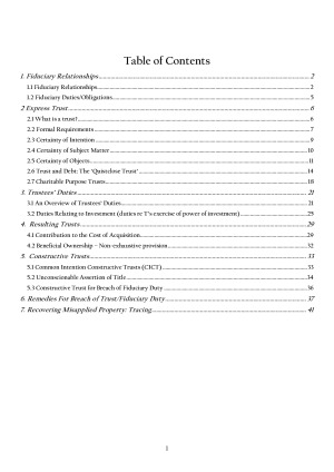These notes were the only material I relied on for the hypothetical problems during my final exam and were specifically designed for time-pressured exam conditions. They are concise, highly structured hypothetical (problem-style) notes, created to allow quick reference during the exam. The content focuses on clear issue-spotting, logical analysis frameworks, and easy-to-follow step sequences tailored for hypo questions. Topics covered: • Fiduciary relationships • Express trusts • Quistclose trusts • Charitable trusts • Trustees’ duties • Resulting trusts • Constructive trusts • Remedies for breach of trust and fiduciary duty • Tracing