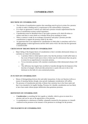 All topics/weeks covered. Topics include: - Intro to Contract Law - Agreement: Offer - Agreement: Acceptance - Consideration - Intention to Create Legal Obligations - Certainty - Formalities and Capacity - Estoppel and Privity - Express Terms: Identifying Express Terms - Consumer Contracts Covers content from the semester in a concise manner. Goes over the main/relevant information required for all assessments including the exam.