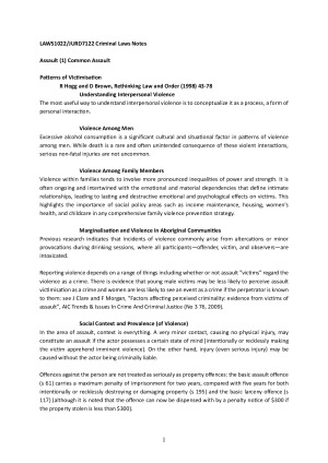 Achieved a final unit mark of 85 (High Distinction) in LAWS1022/JURD7122 Criminal Laws. These comprehensive notes are a highly structured resource integrating legislation, common law principles, and detailed case summaries designed for the Final Exam. The notes include: Assault: Analysis of Common Assault (s 61), aggravated assaults causing ABH (s 59) or GBH (ss 33, 35), and consent in violence (, Brown, Wilson). Homicide: Detailed coverage of Murder (s 18), including the four "heads" of mens rea; Involuntary Manslaughter (criminal negligence vs. unlawful and dangerous acts); Constructive Murder; and Homicide by Omission. Causation: Analysis of the "substantial and operating cause" test and various interventions in the chain of causation (, Royall, Blaue, Hallett). Property Offences: Common law Larceny elements; statutory Fraud offences (s 192E); and the standards for "dishonesty" and "claim of right". Complicity & Group Crime: Frameworks for Joint Criminal Enterprise (JCE), Extended JCE, Accessorial Liability (aiding and abetting), and the law of Conspiracy. Defences: Comprehensive guides for Mental Health/Cognitive Impairment; Automatism (sane vs. insane); Intoxication (Part 11A); Self-Defence (s 418); and Extreme Provocation (s 23). Each section includes "Material Facts," "Issues," and "Held" summaries for all prescribed cases to facilitate efficient application during problem questions.