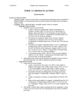 These notes cover everything you need for the final exam to navigate tricky problem questions quickly and effectively. A problem you might experience when using the notes of other students is that they are often written in a way that is unique to them. In turn, things that they might deem crystal clear can feel confusing or incomplete when you're trying to apply them under exam pressure. My approach to exam scaffolds is a bit different. I make sure my notes can walk me through each issue step-by-step, providing a clear scaffold that I can transcribe almost word-for-word onto the paper. This allows me to avoid the pressure of the exam interfering with my answers. It also means that anyone should be able to walk into an exam hall with just these notes and confidently answer any question that is thrown their way. In saying that, the best way to use these notes is to not wait until before your final exam to buy/ look at them. Instead, I recommend taking them to class and adjusting them to your liking, making note of anything your tutor places particular emphasis on (such as notable dissenting judgements). So, if you are looking for a set of notes that are: - Comprehensive and provide extra pieces of case analysis to bolster your responses, - Based on case readings, textbooks and seminars, - Easy to understand and follow, - Reasonably priced, and - Exam-ready I think you will find these notes to be a worthwhile investment. Furthermore, as a consistent high-achiever and student of the Dean’s List, you can rest assured that your notes are of high quality. Topics covered: - Topic 1: (A) The Concept and Function of “Property” and (B) Real Property - Introduction to Real Property - Topic 2: Personal Property - Introduction to Choses in Possession - Topic 3: Personal Property - Introduction to Choses in Action - Topic 4: Assignment and Disposition of Interests - Topic 5: Priority Regimes If you are in your penultimate year, I wish you all the best and hope these notes can assist you in achieving your academic goals for the year. Good luck!