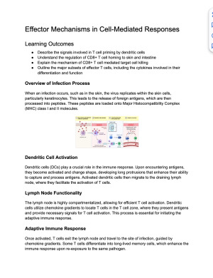 Selling my highly detailed and well-organised notes for MIIM30002 Principles of Immunology, covering Module 3: Adaptive Immune Development and Response. I am a University of Melbourne Dean’s Honours List recipient, and I achieved an H1 (85) in this subject using these notes. This document covers adaptive immune development and responses in depth, including: Early lymphocyte maturation – T cells Cellular interactions and trafficking (T cells) Effector mechanisms in cell-mediated immune responses Early lymphocyte maturation – B cells Cellular interactions and trafficking (B cells) Effector mechanisms of humoral (B cell) immunity Immune memory responses Adaptive immune responses in cancer The notes are: Structured around learning outcomes Highly detailed, clear, and exam-focused Supported by diagrams and images to explain complex cellular and molecular immune processes These notes are ideal for: Understanding how adaptive immune responses develop, function, and are regulated Integrating molecular mechanisms with physiological and clinical relevance Efficient revision for MSTs and final exams I also have notes for all other modules in MIIM30002, as well as a single document containing the full subject notes, available if you’re interested. Great resource for students aiming for a strong H1 in MIIM30002.