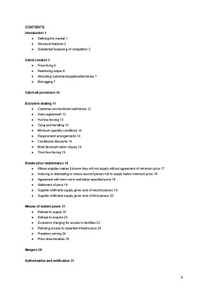 Final exam scaffold covering: - Market definition - Cartel conduct and catch-call provisions - Exclusive dealing - Resale price maintenance - Misuse of market power - Mergers - Authorisation and notification