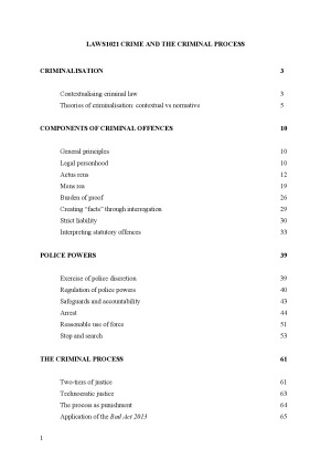 HD (90%)- 2nd in course 2025 - Crime & Criminal Process Summary Notes