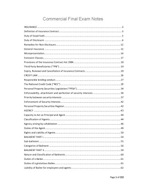 INSURANCE 4 Definition of Insurance Contract 4 Duty of Good Faith 6 Duty of Disclosure 7 Remedies for Non-Disclosure 13 General Insurance 13 Misrepresentation 15 Exclusion Clauses 18 Provisions of the Insurance Contract Act 1984 20 Third Party Beneficiaries (“TPB”) 20 Expiry, Renewal and Cancellation of Insurance Contracts 22 CREDIT LAW 27 Responsible lending conduct 28 The National Credit Code (“NCC”) 31 Personal Property Securities Legislation (“PPSA”) 35 Enforceability, attachment and perfection of security interests 37 Priority between security interests 39 Enforcement of Security Interests 43 Personal Property Securities Register 44 AGENCY 45 Capacity to Act as Principal and Agent 45 Classification of Agents 46 Agency arising by cohabitation 48 Duties of the Agent 51 Rights and Liability of Agents 52 BAILMENT PART I 55 Sub-bailment 57 Categories of Bailment 57 BAILMENT PART II 61 Nature and Classification of Bailments 61 Duties of a Bailee 62 Duties of a gratuitous Bailee 63 Liability of Bailee for employees and agents 63 Sub-bailments 64 Duties of a Bailor 64 CORPORATE INSOLVENCY 65 Bankruptcy 78 DISCHARGE FROM BANKRUPTCY 132