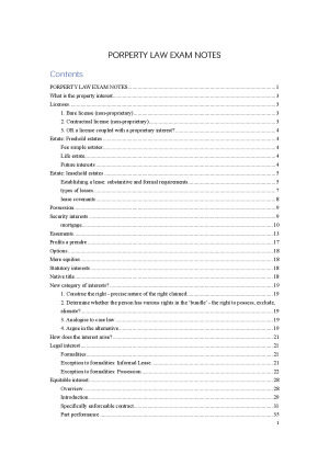 These are the notes I took into the exam and I got a H1 for this subject. They include step-by-step hypo structure that you can easily adapt in an exam and detailed case summaries. (**also includes Native Title) These notes will also be helpful for the mid semester multichoice exam. Furthermore, unlike many other notes that are too lengthy and hard to navigate, these notes try to be concise and explain the law/case efficiently so that it could be of best use in the exam. topics included: i what is property interest: license, freehold estate, leasehold estate, possession, security, easement, profit, option; ii how does the interest arise: legal interest, equitable interest, mere equities; iii priority disputes: indefeasibility, exceptions, conflicts between unregistered interests, compensation, iv statutory interest, v native title *About me: Top 30 in my cohort; previous EAGLE tutor. ** Please note that these subject notes are purely for the purpose of aiding your understanding and enhancing your knowledge on the subject matter. Please paraphrase to avoid any plagiarism for your benefit.