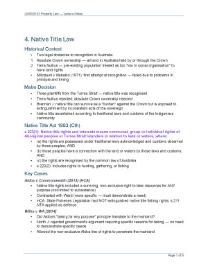 Comprehensive Property Law notes designed for easy revision, following the lectures, and exam prep, covers the full course, including foundations of property, possession, adverse possession, native title, fixtures, tenures and estates, co-ownership, priorities, and transfer of interests. Includes key cases, legal principles, statutory provisions, and clear summaries of complex doctrines, structured in a concise, easy-to-follow format to save study time and make difficult concepts more manageable. Ideal for semester-long study, problem questions, and final exam preparation.