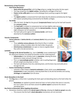 Comprehensive, structured notes designed to simplify complex equine concepts and help you study efficiently for exams and clinical placements. This resource consolidates key topics from Equine Practice A into clear, easy-to-follow summaries, focusing on what actually matters for understanding and application. Topics covered include: Cardiovascular system Respiratory system Anatomy (clinically relevant focus) Clinical pathology Diagnostic imaging Lameness evaluation Poor performance workups Practical/clinical notes for real-world application Each section is organised to highlight high-yield concepts, common exam themes, and clinically relevant insights, making it ideal for quick revision or deeper understanding. Perfect for: Vet students preparing for exams Clinical rotation revision Building a solid foundation in equine medicine