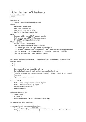 - MBLG1901 Molecular Bio and Genetics Adv Complete Course Notes (High Distinction)