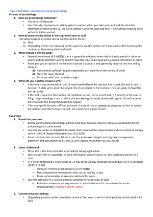 I found the textbook to be incredibly long for this subject, and so I created very condensed notes for it. I received 59% overall for this subject because of my group assignment; while i received an HD on my partners failed the other part, hence the low mark. Topics 1, 2 and 12 are not included in these notes as for us they were not examinable. ADR is also not included as for us we had a specific essay question given to us before the exam and so did not need to write notes on it.