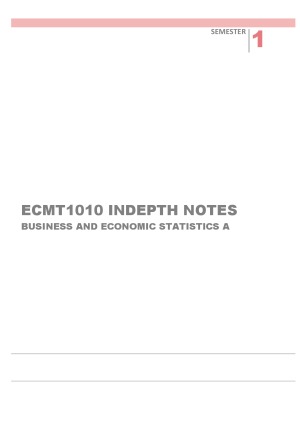 Neat, concise ECMT1010 notes that are organised by textbook outcomes. Very useful for content rules and summaries. Each page includes headings, subheadings, week numbers and page numbers. All outcomes are numbered correctly. Entire subject content is included - from both lectures and textbook material.