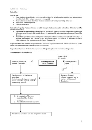 These LAWS1021 notes are good for the open book exams. The key issues principles are succinctly summarised in a logical, step by step process to aid with solving problem questions. This may be through the use of flow charts, tables or numbered lists, so information can be found quickly in an exam.