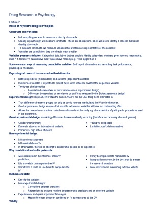 Notes containing methodology and basic instructions on the R workspace which is used in DRIP and most other psychology courses requiring statistical analysis. Textbook: Learning Statistics with R by D. Navarro Please also see the Exam Revision Notes I have uploaded for this course - which contains images and a condensed version of the key points to be studied in the course.