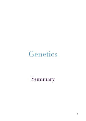 This is the summary of my lecture notes (which I had written down in a book), which I used for my exam revision and it helped it quite a lot. Contents of summary notes include: - Mitosis and Meiosis - Mendelian Genetics - Extension of Mendel - Population Genetics - Sex Determination and Sex Chromosomes - Changes in Chromosome Number and Structure - Extranuclear Inheritance - DNA - Mutations and DNA Repair - Regulation of Gene Expression in Prokaryotes - Regulation of Gene Expression in Eukaryotes - Quantitative Genetics - Population and Evolutionary Genetics Hope this helps you out as much as it did to me!