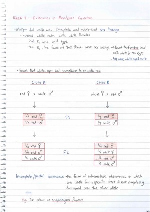 I had split these notes into 2 PARTS, because StudentVIP couldn't take it! This is part 1 These are the notes I personally wrote out each week after a lecture was given. I have scanned all the pages and made it into 1 PDF. The notes include pictures from the lecture/textbook alongside the text to further help understand the concepts better. Took me hours upon hours to perfect the formatting into the way I wanted it to, and it's made it into the high quality notes that you see here. Hope these are as much of help to you as they were to me! Contents of THIS PART include: - Introduction - Mitosis and Meiosis - Mendelian Genetics - Extensions in Mendelian Genetics - Population Genetics - Chi Square Analysis of Data - Gene Linkage and Mapping Contents of PART II include: - Sex Determination and Sex Chromosomes - Changes in Chromosome Number and Structure - Extranuclear Inheritance - DNA - Mutations and DNA Repair - Regulations of Gene Expression in Prokaryotes - Regulations of Gene Expression in Eukaryotes - Quantitative Genetics