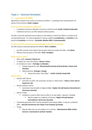 70211 Distinction 70211 Contract Notes. Includes: * Thorough notes on all topics * Case summaries and authorities These notes are detailed and perfect to use for the assignments and exam.