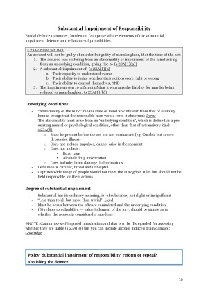 These LAWS1022 notes include; - Detailed problem question guides (with step-by step instructions) and policy question notes that are clearly separated for the whole course - Comprehensive guide to the Crim II course from a HD student 1. Homicide 2. Defences 3. Assault 4. Dishonest Acquisition 5. Extending Criminal Liability 6. Sentencing