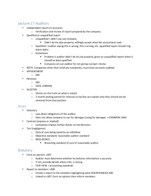 Through these notes, I received a HD mark. I am selling my notes for LAWS2301: Company Law. These notes summarise ALL lecture slides and their corresponding textbook chapters and also ALL important examples from textbooks and lectures that will come up in exams. One of the most comprehensive notes you'll find. These notes summarises each topic to DETAIL so that minimal guidance from the textbook is required, but still in an easy to follow format (all notes are written in detailed dot points rather than lengthy and hard to follow paragraphs). It incapsulates all important materials from lectures and the textbook into one easy to follow, and easy to read document. So basically, ALL you need to know for the unit to achieve a HD in one document.