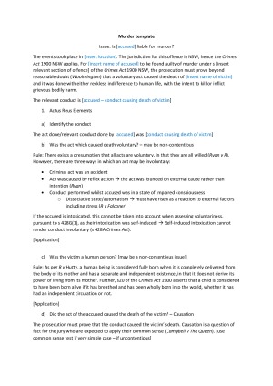These are templates for answering questions on murder, manslaughter, assault, sexual assault, complicity, defences and property offences in LAWS1206. I took these templates with me into the final exam.