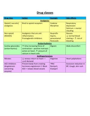 Drug classes, examples, side effects, uses. Easy colour coordinated poster size notes!