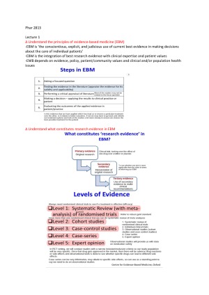 A complete set of PHARM2813 notes covering all lecture materials in semester 1, 2016. Everything is covered in great detail. Everything is written according to student learning objectives.