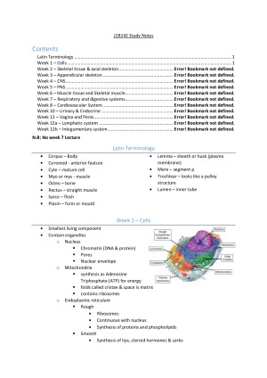 Dot point format of all lecture information and images to assist learning for LSB142. Includes some commonly used Latin definitions.