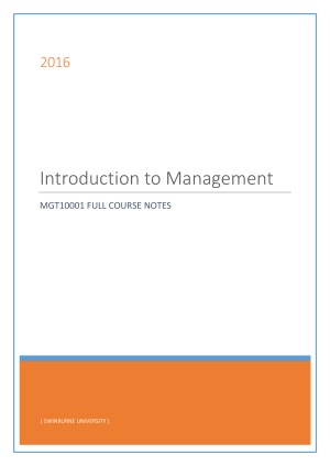 MGT10001 Introduction To Management Complete Detailed Subject Notes