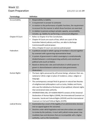 These are very detailed notes. They include definitions, constitution summaries, complete case summaries and notes on topics.