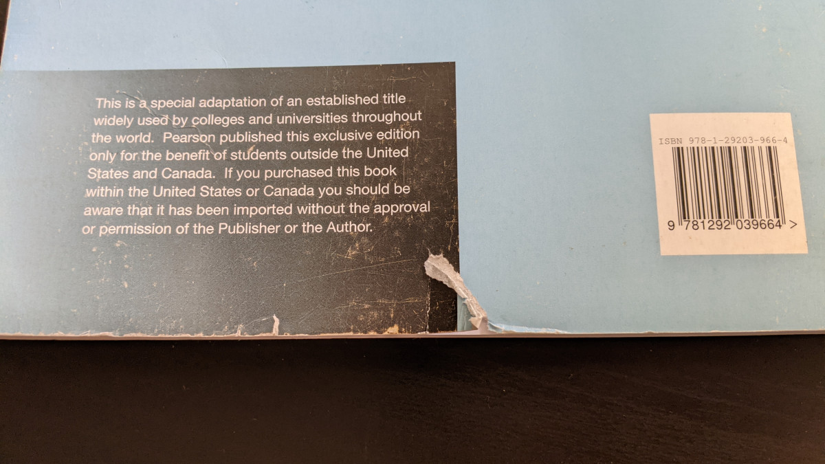 Small tear on the back cover.