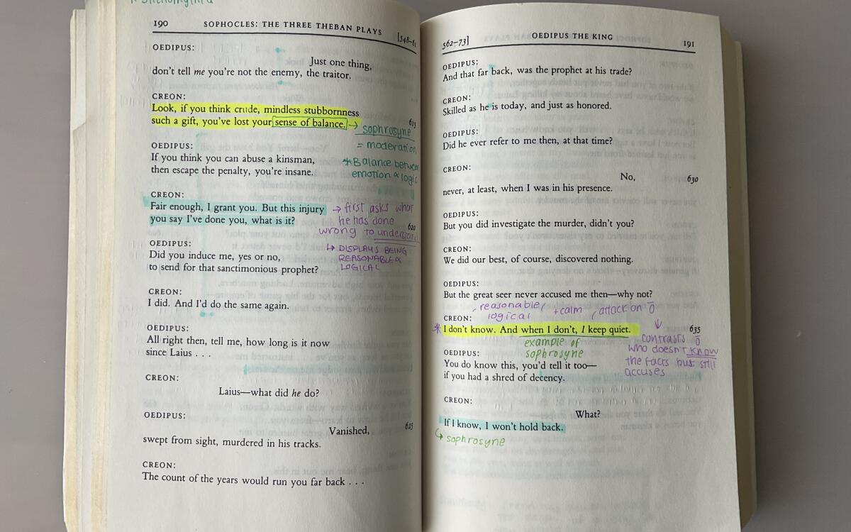 The Antigone and Oedipus At Colonus parts of the book are not highlighted nor annotated - Perfect Condition. The Oedipus the King part of the book contains self-made annotations + highlights, however, all still very usable and in good condition.