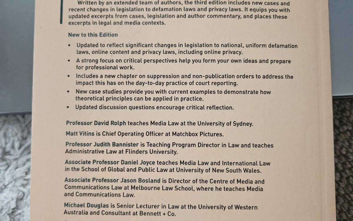 David Rolph, Matt Vitins, Judith Bannister, Daniel Joyce, Jason Bosland, Michael Douglas, Jonathan Gill