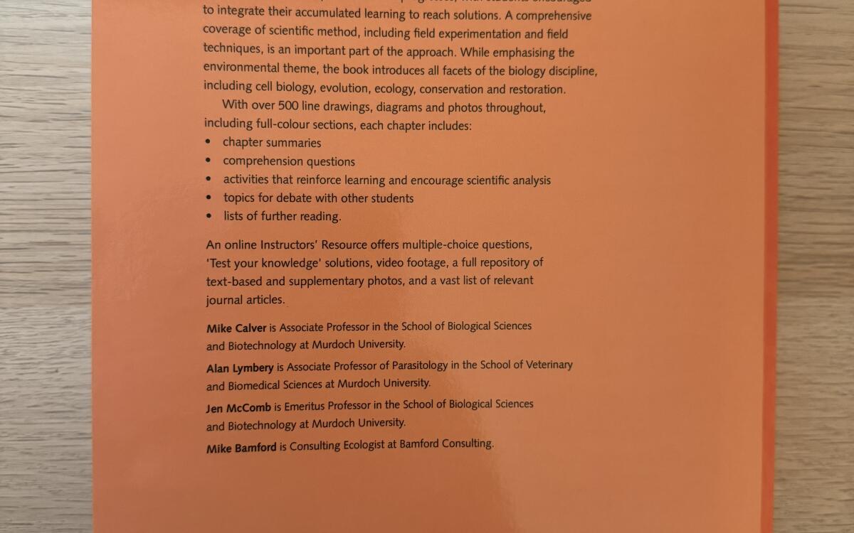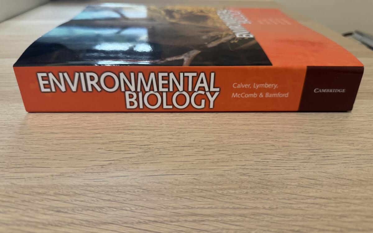 SHIPPING INCLUDED Environmental Biology edited by Mike Calver, Alan Lymbery, Jen McComb, Mike Bamford; published by Cambridge University Press (2009) paperback copy. Bought new direct from Cambridge website however changed courses and book has not been used. In brand new condition no crease in spine, markings, tears, folded pages or annotations/ highlights. $80 with shipping included otherwise can meet in Adelaide.